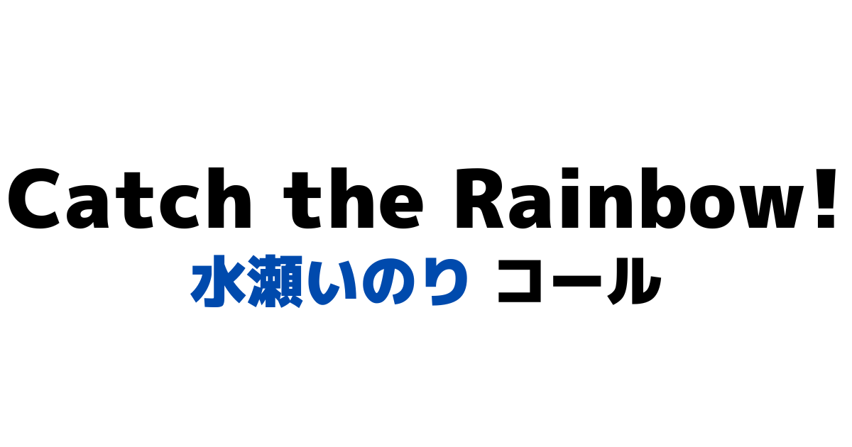 水瀬いのりさんの楽曲 Catch the Rainbow!のコールです。初心者向けのつもりで作りました。コールは強制ではありませんが、それぞれがライブを楽しむ材料の一つにしてくれたらと思います。